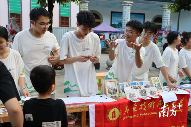 团队精准对接当地需求,精心设计有关红色教育、美育实践、非遗文化的特色课程,为南方村50名儿童开展了25场寓教于乐的课堂教学,同时深入南方村、罗洞村开展实地调研,创新探索非遗传承与旅游资源的融合新路径,提出在当地建筑中融入木雕文化元素,让乡村特色文化焕发新生机。