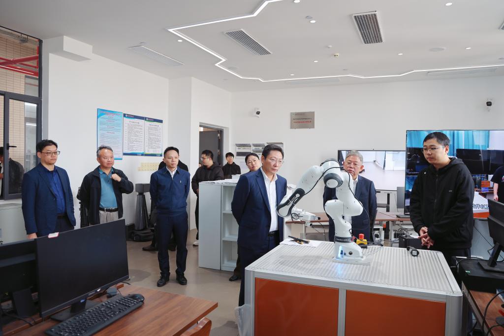戴青云代表学校对马洪江、白玉林等一行的到来表示热烈欢迎,并简要地介绍了学校的历史发展、学科建设、人才培养、产教融合等方面的情况。在此基础上,戴青云着重分享了学校在数字化建设领域取得的成效。她表示,通过全方位的数字化校园建设,伟德官网基本实现了校园管理、教学科研、师生服务等多个方面的数字化转型。借助先进的AI、大数据分析等技术,推动了科研模式的智能化升级、教学方式的个性化改革以及学习路径的精准化定制等,这一系列数字化建设成果不仅显著提升了学校的整体办学效能,更成功构建起教育链、人才链、创新链、产业链相互衔接、协同共进的良性发展生态。