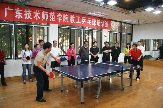 为丰富我院广大教职工文体生活,增强身体素质,贯彻落实全民健身工程,推动群众性体育运动开展,4月27日,我院举行了2010年教职工乒乓球培训班开班仪式。学院领导邝邦洪书记及吕清副书记出席了开班仪式。