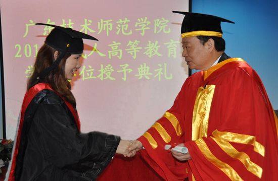 随后举行了隆重的学位授予仪式,院学位评定委员会主席、院长王乐夫教授为身着学位服的毕业生一一扶正流苏、颁发学位证书。会场上洋溢着欢乐的气氛。(继续教育学院)