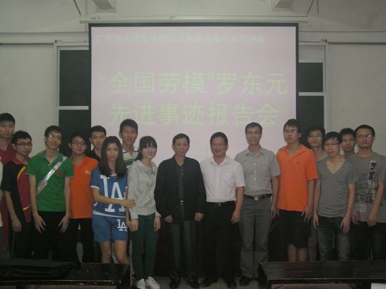 4月26日,2012年“以德为行,以学为上,提高学生核心竞争力”就业指导系列讲座之“全国劳模”罗东元先进事迹报告会在西校区多媒体一教室举行。学生处负责人、相关辅导员及200多名学生参加了本次报告会。