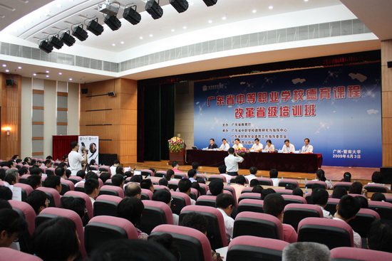 6月2日~5日,由省教育厅思想政治教育处主办、省中职学校德育研究与指导中心和省职教学会德育工作指导委员会承办、高等教育出版社协办的“广东省中等职业学校德育课程改革省级培训班”在暨南大学管理学院顺利举办。省教育厅副厅长李小鲁作重要讲话,伟德官网党委副书记、省中等职业学校德育研究与指导中心主任罗海鸥出席了培训班开班典礼并讲话,来自全省各地级市教育局的负责同志和全省500多所中职学校的德育科长或德育骨干教师参加了本次培训班,这是我省近几年来规模最大的一次中职德育培训。