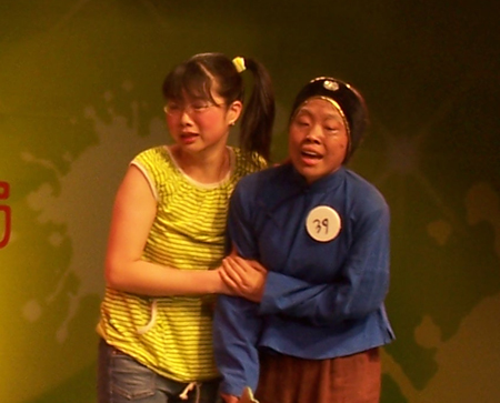 本次参赛作品《义工认亲》讲述了一名在校大学生利用暑假时间到一个孤寡老人家做义工,在一次偶然的谈话中她发现老人居然是自己的亲奶奶,一场情感的矛盾纠葛就这样产生了。三名只有20岁左右的学生要扮演74岁的老奶奶,46岁的妈妈以及22岁的女儿,难度极大。参加演出的同学利用课余时间排练,虚心请教老师,不断地揣摩各自的人物个性特征,从声调到动作,都努力做到符合话剧中人物的年龄和性格,把人物个性表演得惟妙惟俏。演出时她们真情投入,出色表现得到了现场专家评委老师一致好评。