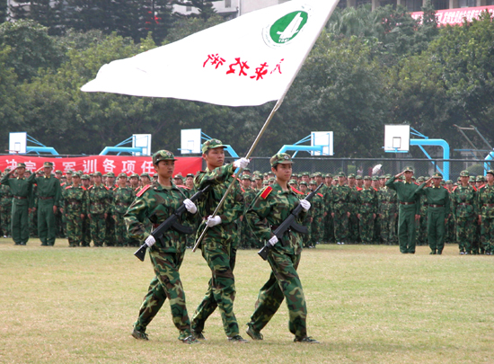 本次军训从9月9日开始,历时十五天,共行进了队列、内务、拉歌、实弹射击等科目的训练,以及举办了拔河比赛和军事理论讲座。本次军训得到了广东省武警二支队的大力支持,全体参训的2000多名新生在教官的严格要求,悉心指导下,训练刻苦,顽强拼搏,军训取得优异的训练成果,达到了预期的目的。其中,由机电系、财经系、中文系、管理学系分别组成的军训团二连、四连、八连、九连分别被授予军训先进连队的称号。