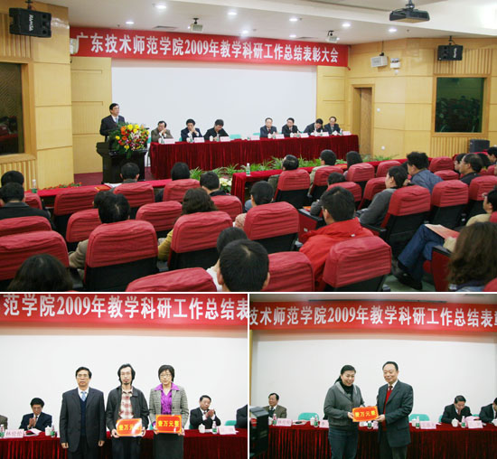 在教学方面,我院提出了“3+2”职教师资人才培养综合改革方案工作思路,组织起草申请现代职业教育体系理论研究与实践探索专项建设经费报告,日前,我院获省教育厅、省财政厅资助的职教人才培养模式综合改革专项经费500万元;学院师范技能训练中心申报广东省师范技能训练示范中心成功获批,省教育厅、省财政厅予以150万元的建设资助;装潢设计与工艺教育专业被批准为2009年度第四批国家级特色专业建设点,这是我院在国家级特色专业建设点项目上零的突破;王乐夫院长负责的教学研究项目《面向、服务与引领职教,培养高素质职教师资的研究与实践》获得广东省第六届教学成果一等奖;我院2007级大学英语四级通过率从去年的60%提高到今年的65%,为我院历届同期大学英语四级考试的最好成绩;以社会科学部张敬斌教授为课程负责人的《毛泽东思想和中国特色社会主义理论体系概论》获省级思想政治理论课优质课程奖;社科部李琴、李志安教师在2009年度广东省高校思想政治理论课青年教师教学基本功比赛中分别获得二等奖和优秀奖;组织了第十三届广东省和全国多媒体教育软件大赛的作品推荐申报工作,我院多个参赛作品获奖,其中获全国二等奖1项,三等奖3项,我院继续获得全国多媒体教育软件大赛的“最佳组织奖”;在中期检查评估和师范类本科专业评估工作中,装潢设计与工艺教育、汉语言文学专业、财务会计教育、应用电子技术教育、通信工程5个专业被评为校级名牌专业及本科专业“优秀”等级奖;刘竞、陈丽君、万巍、黄玲老师获2009年学校课堂教学观摩及双语课堂教学竞赛奖;付辉、曹晶、杨永、祁伟、杨继福、靳继君、刘炽辉老师获学生专业竞赛优秀指导教师奖。此外,在我院老师的指导下还有一批学生在国家级、省级各类比赛中获奖。