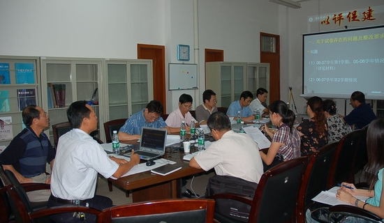 会议首先由评建办负责同志通报了05—06学年、06—07学年第一学期考试试卷及06届、07届学生毕业论文检查情况,重点分析了存在的问题,并提出了具体的整改要求。然后,教务处负责人对二级学院“人才培养方案”的制定、执行情况的检查进行布置。