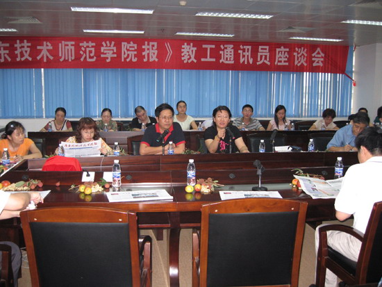 6月14日,《广东技术师范学院报》召开教工通讯员座谈会,来自全校各直属单位40多名教工通讯员参加了会议。座谈会通报了通讯员聘任、管理、培训等有关情况,听取了通讯员对校报工作的意见与建议。座谈会由党委宣传部负责同志主持。校党委副书记李月到会并作了讲话。
