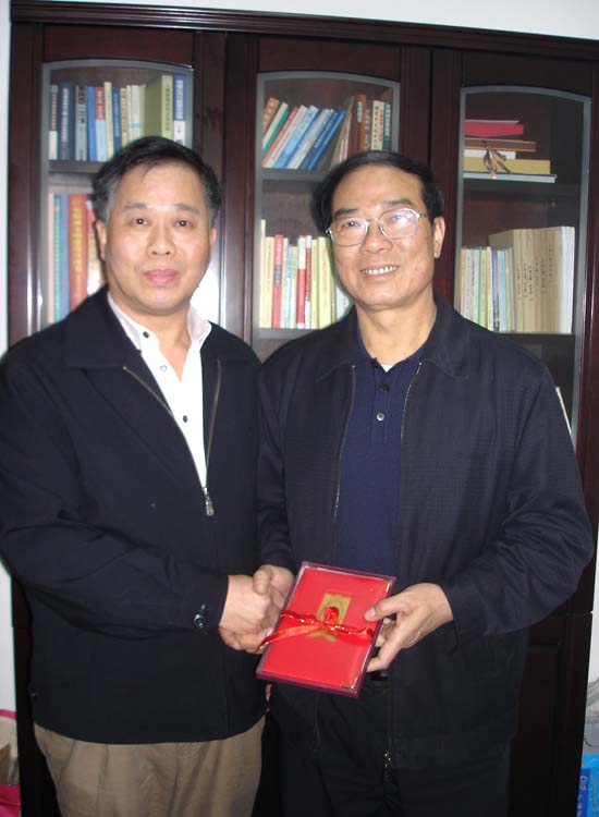 日前,省委组织部副部长、省人事厅厅长谭璋球(右一)被聘为我院客座教授。学院党委书记、院长郭斯淦教授代表学院向他颁发了聘书。