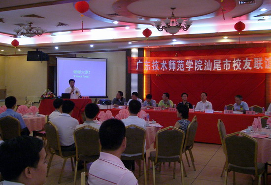 广东技术师范学院汕尾校友联谊会换届工作会议于7月7日在汕尾市富临大酒店举行。邝邦洪、王乐夫、林卓等校领导出席会议,原学校党委书记、汕尾校友会顾问马世品同志应邀参加会议。会议由汕尾市第一届校友会常务副会长林航校友主持,103名汕尾校友代表参加了会议。