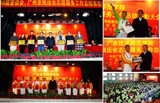 1月14日,我院第16届亚运会、广州亚残运会志愿服务工作总结表彰大会在我院综合馆三楼隆重举行。学院党政领导邝邦洪、王乐夫、李月、詹步强、潘自勉、林卓、冯灿仪、王培林出席了大会。学院亚运会志愿者招募培训工作领导小组成员、亚运会亚残运会志愿者督导、各学院主管学生工作的书记或副书记、团委全体干部、各团总支书记、我院亚运会亚残运会P类人员及1500多名亚运会亚残运会志愿者代表参加了大会。