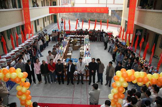 据悉,邝邦洪、罗海鸥等校领导率先为“爱心超市”捐助了爱心资金,不少校友、教工以及电信学院全体师生也纷纷捐出款项。所有捐赠的现金、物资不仅传递着学校领导、老师、校友和同学的一份爱心,更体现了广师这个温暖大家庭对经济困难学生的关爱。第三期“爱心超市”短短两个小时的“营业”收到了很好的效果,现场气氛热烈。据统计,共有400多名贫困生进场分享了这份温暖。(电信学院 钟健雄)