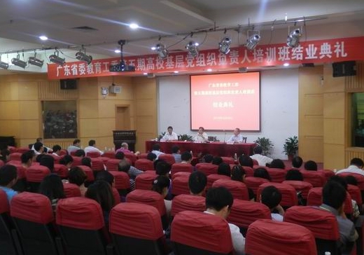 据悉,广东省委组织部和省委教育工委为进一步加强高校基层党组织建设,提高基层党组织负责人的素质和能力,从2010年起,省委教育工委用三年时间对全省高校二级院(系)党委(党总支)书记轮训一遍,每年400人。省委教育工委选定中山大学、华南师范大学、广东外语外贸大学、广东技术师范学院等4所高校为高校基层干部教育培训基地。本次培训班自2012年5月14日开班至5月25日结业,为期共2周。(党委组织部)