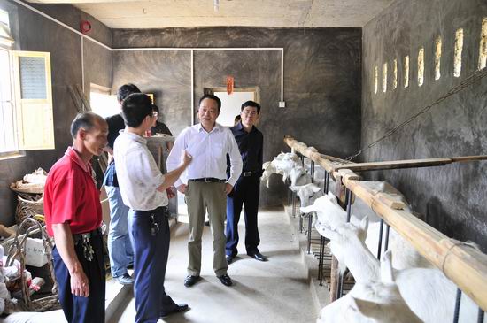 正值当地农忙采茶季节,王乐夫到部分贫困户家走访。在茶农张世万家,王乐夫向他了解茶叶采摘情况及最近的市场行情,并亲自品尝了由我院扶持的项目示范基地出产的茶叶。王乐夫给张世万派送了慰问金,鼓励他勤劳致富,早日脱贫。在“双到”示范户廖金华的项目基地,王乐夫了解廖金华养的十多头奶羊的长势,询问其山羊产奶及羊奶销售情况,对这种靠勤劳、靠技术的脱贫致富之路表示赞同和支持。