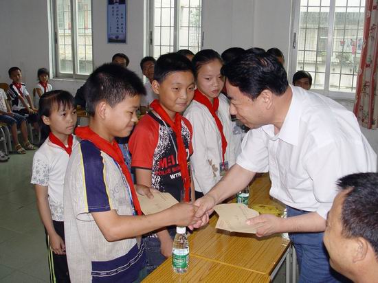 驻点村小学校长介绍了该校的基本情况,他代表学校全体师生对广东技术师范学院的关心和支持表示真诚的感谢。随后,吕清副书记代表学校分别为小学2名孤儿、8名单亲儿童发放了慰问金,为6名区级“三好学生”、6名镇级“三好学生”赠送了书包、文具盒等学习用品。吕清副书记一行还为全校800余名学生每人发放了一支牛奶,并向全体学生致以节日的问候,鼓励他们好好学习,天天向上,早日成才。(周勇)