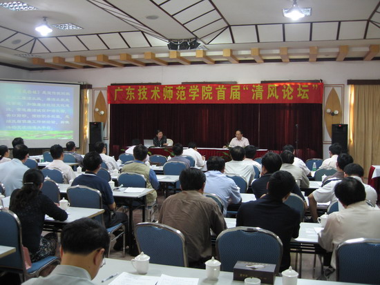 为全面贯彻落实中央《建立健全教育、制度、监督并重的惩治和预防腐败体系实施纲要》,由学院纪委、审计处联合举办的首届“清风论坛”11月9日至10日在肇庆高要隆重举行。本次论坛主题是规范学院二级财务管理,提高治理商业贿赂的自觉性,进一步加强我院的党风廉政建设和反腐败工作。学院领导邝邦洪、李月、林伦伦、林卓、冯灿仪、王培林,各党总支书记、各系分管财务工作负责人,机关、教辅、科研各部门负责人,以及有关招生、教材、图书采购、后勤等重点岗位负责人共90多人出席了会议。