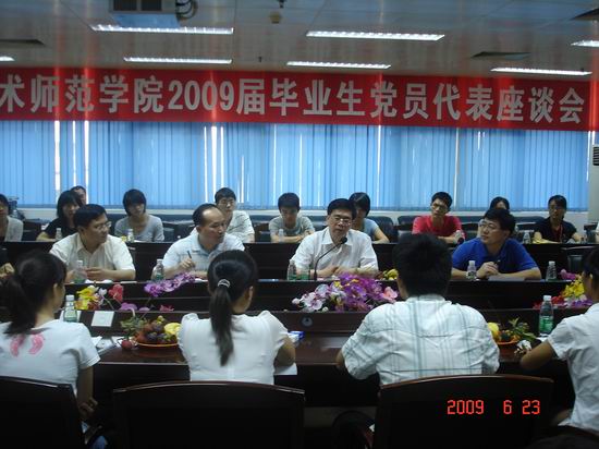 6月23日,学校召开2009届毕业生党员代表座谈会。校党委书记邝邦洪教授出席了座谈会,党委组织部、纪委、学生处、团委、教务处有关负责同志和各二级学院35名2009届毕业生党员代表参加了座谈会。 在座谈会上,毕业生党员从自己的大学生活和成长经历谈起,围绕学习实践科学发展观、加强党建工作、开展“以德为行,以学为上”主题教育活动、提高就业核心竞争力等方面畅谈了自己的看法,并就如何发挥党员的先进性,自觉践行“以德为行,以学为上”的教育思想,走好廉洁人生路,在以后的工作岗位上发挥党员的模范带头作用等方面提出了自己的想法和表明了决心。他们表示,在今后的工作、学习中,将牢记党组织和母校的嘱托,努力践行“以德为行,以学为上”的教育思想,坚持严于律己、廉洁奉公、勤奋工作、开拓创新,永葆党员的先进性,做一名优秀的共产党员,以优异的工作和学习业绩,为党旗增辉,为母校添彩。 校党委邝邦洪书记在座谈会上作了讲话。邝书记深情地说,毕业生党员代表的发言让他感到特别高兴和欣慰,因为同学们都没有忘记学校的培养,都对自己走上社会之后怎么去做表了决心。 邝书记充分肯定了毕业生党员代表们的发言,并通过参加座谈会的毕业生党员代表向全校毕业生党员提出了四点希望:一是希望大家走上社会工作之后,要时刻记住自己是一名光荣的共产党员,要牢记共产党员必须履行的八项义务,要保持党员的先进性,增强社会责任感和使命感,在各自的岗位上发挥党员的先锋模范作用。二是希望大家坚定理想信念,爱岗敬业,踏实工作,积极奉献,奋发有为,始终保持身心健康。三是希望大家树立终身学习的理念,加强学习,通过学习来增长知识,增长才干,为经济社会的发展做出贡献。四是希望大家走上社会以后,仍然要践行“以德为行,以学为上”的教育思想,并把它作为一生的承诺,一生的践行,一生的追求。 座谈会由学校党委组织部长杨少锋主持。(组织部 陈军) |