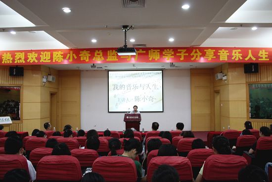 在《我的音乐与人生》的主题演讲中,陈小奇从他的人生谈起,讲述了他与音乐结下的不解之缘,以及开创他的音乐事业的传奇历程,并在讲座中穿插播放了他创作的歌曲作品,更把大家带入到美妙的视听享受境界。在讲座中,尤其吸引学子的是他对音乐的执着和兴趣。在他的代表作品展示中,《涛声依旧》《大哥你好吗》《我不想说》《高原红》中的歌词都用到了古诗词中典雅的意境与意象,是文学给他的词注入了灵魂。因此,他敬告学子们,要打好中文基础,用中国博大精深的文化充实自己,要有执着的追求精神,要善于发现和培养自己的爱好和兴趣。