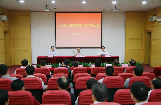 会上,景李虎同志受省委组织部和省委教育工委的委托,宣读了中共广东省委组织部《关于广东技术师范学院新一届行政领导班子调整配备的通知》和《关于幸小涛、王培林同志职务任免的通知》。经省委研究决定,王乐夫同志任广东技术师范学院院长,潘自勉、林卓、冯灿仪、许玲、幸小涛同志任广东技术师范学院副院长;任命幸小涛同志为广东技术师范学院党委常委,免去王培林同志广东技术师范学院副院长、党委常委、委员职务。