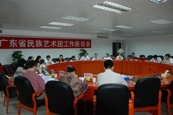 座谈会在省民族宗教事务委员会民族工作处符永培同志主持下开始。会议气氛热烈,大家畅所欲言,与会者普遍认为,广东民族艺术团自去年10月份成立以来,各分团都挖掘自身潜力,加紧排练,打造节目品牌,如连南分团的原生态瑶族歌舞受到了中央电视台音乐频道《民歌•中国》栏目组的关注,并应邀前往北京录制《连南瑶族风情》专题节目,将于5月份向全国播出,这为扩大艺术团的社会影响力起到了积极的作用。在讨论中,大家对8、9月份赴佛山、东莞巡演达成了共识,一致认为,这是广东民族艺术团对社会公开首演,要精心策划,拿出精品,给广东人民交上一份满意的答卷,为中华人民共和国成立60周年献上一份厚礼。