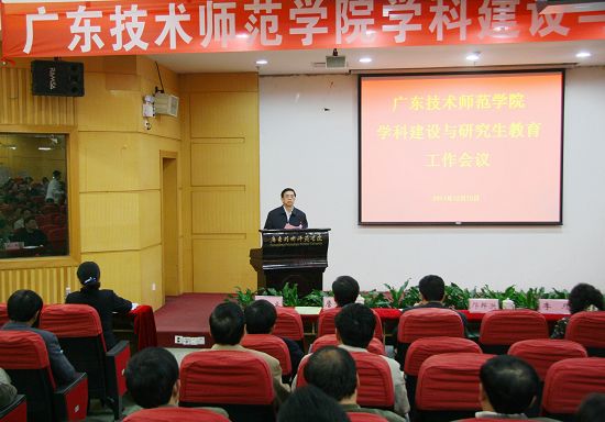 12月15日,我院学科建设与研究生教育工作会议在校本部第一教学楼讲学厅召开。学院党政领导邝邦洪、王乐夫、李月、詹步强、潘自勉、林卓、冯灿仪、许玲、幸小涛,校级重点(扶持)学科点负责人、学科各方向负责人,各教学教辅单位党政主要负责人、学科建设工作负责人,机关各部处主要负责人,全体研究生导师、研究生工作秘书,部分具有正高职称或博士学位的教师参加了本次会议。会议由学院院长王乐夫主持。 学院副院长许玲向大会作了我院学科建设与研究生教育的工作报告,全面回顾了我院近五年来学科建设与研究生教育工作的经验和成绩,分析了我们面临的形势和存在的不足,解读了国务院学位办关于学术型硕士学位一级学科授权和硕士专业学位点的相关政策,分析了我院在申报省教育厅 “十一五”以来推进的学科与平台建设项目中的情况,提出了今后发展的工作思路。许玲介绍,我院于2007年开始招收研究生,至今已经招收了5届硕士生,共计409名,其中有2届已毕业,共103人。目前,我院有硕士学位授权一级学科点1个,二级学科硕士点3个,研究生教育已经走过了基本的探索期,研究生培养和学位授予质量稳步提升,在两届毕业生中考取博士研究生的有7人,2人被评为南粤优秀研究生,研究生教育教学改革效果初显。许玲指出我院硕士学位授权点少、覆盖面窄,布局结构不合理,与我院“面向职教、服务职教、引领职教”的办学定位不相适应;同时我院硕士研究生教育还存在的基础条件、平台建设不足;导师队伍建设有待于进一步加强等问题。我院在学科建设中也存在研究方向不明晰、学科特色和优势不突出、具显示度的标志性成果少、服务地方社会经济能力不强、缺乏高水平的学科带头人等问题。许玲提出我院学科建设与研究生教育在“十二五”期间的主要任务是积极争取扩大硕士学位授权覆盖面、争取申报博士授权点、积极争取省级重点(扶持)学科、稳步提高硕士研究生培养质量、扩大硕士研究生教育规模、并相应提出了我院学科建设与研究生教育工作的六大要点。一是做好民族学一级学科硕士点的建设工作,同时做好其它学科申报一级硕士学科和硕士专业学位点的筹建工作;二是要切实提高研究生培养质量,开展我院优秀硕士学位论文评选、硕士研究生示范性课程建设等工作,探索我院硕士学位论文抽检双盲审工作,并完善我院硕士研究生优秀科研成果的奖励机制;三是高度重视学科平台建设,根据我院现有的学科特色,有组织有计划地做好平台建设的组织工作;四是要明确我院校级重点(扶持)学科的建设目标,完善我院校级重点学科和重点扶持学科的建设机制;五是切实发挥科研团队的作用,精心筹划,培育标志性科研成果;六是营造全院的学科建设氛围,紧紧围绕学校 “十二五”发展规划确定的目标,充分调动广大教师的积极性,动员和凝聚各方面的力量参与学科建设,并定期编印学科建设与研究生教育简报。 会上,研究生处负责人就研究生培养二级管理文件和研究生培养方案修订指导意见等作了说明。 与会代表按学科分成6个小组,围绕许玲副院长的主题报告和研究生处制定的《广东技术师范学院校级重点(扶持)学科建设管理办法》等9个文件(讨论稿)展开讨论,各学科组代表还就讨论情况进行总结发言,为学院学科建设与研究生教育工作建言献策。 学院院长王乐夫、党委书记邝邦洪在会上先后作了讲话。 王乐夫指出,学科建设水平是大学地位和水平的主要标志,国家级和省级重点学科对一所大学来说,具有重要意义。加强学科建设和内涵建设,提高质量是我们的当务之急,我们要认真做好师资队伍建设、提高科研水平和人才培养质量。民族学作为硕士学位授权一级学科,应切实做好学科发展规划和建设工作,其它三个二级学科硕士点要总结经验,积极准备冲击下次一级学科硕士点的申报,暂无硕士点的二级学院要积极准备硕士专业学位点的申报,研究生处要积极做好新增硕士学位点的组织协调工作,通过全校努力,拓展我院硕士点的覆盖面,扩大研究生教育规模。研究生教育更多的是导师负责制,导师责任多于荣誉。学生的质量直接反映了老师的指导水平。老师在学生的培养质量方面是有责任的。导师对学生有很多有形和无形的影响。有形影响是学术方面的,更重要的是无形的,即老师的为人师表、行为举止对学生的影响。无形的影响可能影响学生的一生。 邝邦洪就学科建设和研究生教育工作提出两点意见。第一,各单位要瞄准我院学科建设的目标,落实各项规章制度,强化执行力。要把我院学科建设的各项工作落到实处,要树立强烈的落实意识,培养创新性的落实思维,完善督察考核机制,制定科学合理的执行落实的规划,真正把我院的学科建设做强做大。第二,要高度重视研究生导师队伍的建设。导师素质与研究生培养质量息息相关。研究生导师队伍建设首先要加强自身德学修养,“以德为行”是我们要首先坚持、身体力行的。教师只有树立良好的道德操守和品行,才能在研究生中树立良好的形象,影响、感召、感化学生;其次要做好课堂教学工作,正确处理好个性化教学与规范化教学的关系。在教学中,研究生导师应积极更新教育观念,改革教学方法,充实教育内容,端正教学心态,大力提高自身科研水平,以科研促教学,全方位提高研究生教