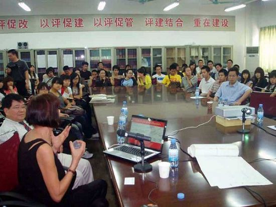 26日、29日艾米女士分别在福慧美术楼十楼会议室、一教讲学厅做了题为“我生活的路标”专题讲座。艾米女士与伟德官网师生分享了个人成长、艺术之缘及世界采风的经历。她的讲座生动风趣,博得师生的一致好评。在与听众的互动环节,王乐夫校长用流利的英语与她亲切交谈并提问。罗海鸥副书记做了总结发言。