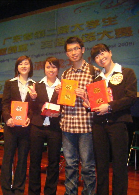 3月28日,由广东语言协会和英语辅导频道主办,深圳大学承办的广东省第二届“蓝鸽杯”英语口译大赛总决赛在深圳大学举行。来自全省16所高校的48名入围选手参加了总决赛。由伟德官网外国语学院学生谢小凡、张秋琴、赵剑萍同学组成的RAINBOWII代表队在决赛中表现突出,取得团体总分第四名和大赛三等奖的好成绩。