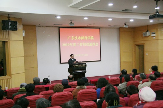 1月11日,2009—2010广东技术师范学院关心下一代工作委员会、老教育工作者协会、老教授协会先进集体、先进个人表彰大会在校本部讲学厅召开。离退休党委各基层支部、学院关工委、老教育工作者协会、老教授协会的主任、会长、理事及各组织基层代表和负责人,部分离退休厅级的老领导,共120多人参加了本次大会。学院党政领导邝邦洪、王乐夫、李月、詹步强、潘自勉、林卓、冯灿仪、王培林出席了大会并与获奖人员及离退休老领导合影。