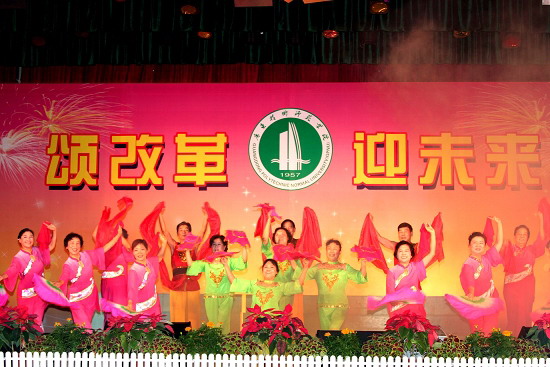 校党委副书记吕清代表学校领导班子预祝联欢会取得圆满成功,并宣布联欢会开幕。整台联欢会以“颂改革,迎未来”为主题。节目丰富多彩、形式多样,主题突出,集中反映了改革开放30年来的伟大成就。(离退办 刘志川)
