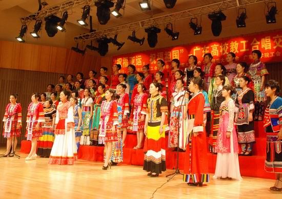 10月31日,由广东省教科文卫工会主办的广东高校教工合唱交流表演晚会在大学城华南师范大学音乐厅举行。暨南大学、华南师范大学、广东商学院、广东技术师范学院等院校工会合唱团参加了本场表演晚会。