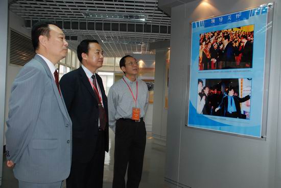 3月18日10:45,预评估专家组组长、海南师范大学校长韩长日教授在伟德官网校长王乐夫教授、副校长王培林教授的陪同下,参观了伟德官网校史展。(杨春荣摄影报道)