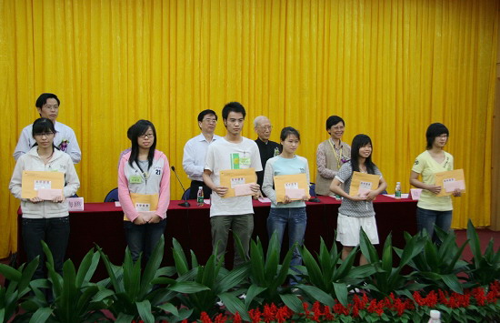 严宽祜先生、校党委书记邝邦洪等领导与嘉宾为获奖的40名学生颁发了奖学金和证书,并与获奖学生在春晖园三楼座谈,共进晚餐。