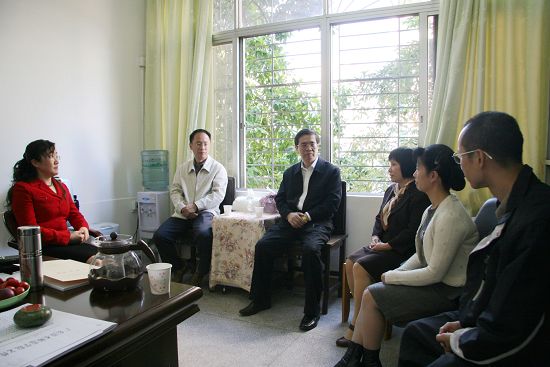 11月4日,学校党委书记邝邦洪在潘自勉副校长的陪同下,深入图书馆进行调研,并与图书馆新班子成员座谈,勉励图书馆新班子成员要围绕学校的办学定位,开拓创新,致力把图书馆办成学习型、服务型、创新型的图书馆。在调研中,邝书记充分肯定图书馆三年多的发展变化,特别是在本科教学评估中发挥了重要的作用。
