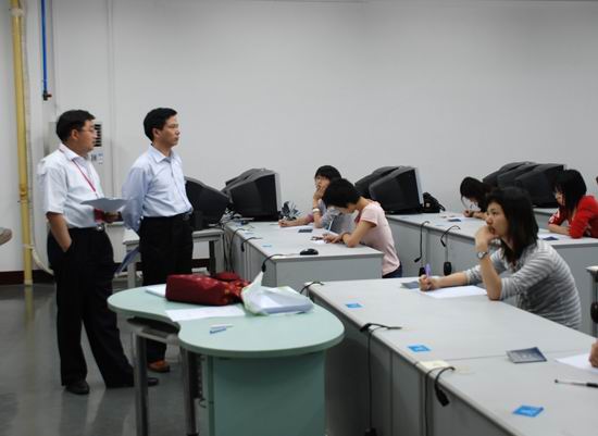 5月20日晚上7点,本科教学工作水平评估专家罗士喜教授、曹杰旺教授不辞劳苦在工业中心进行了学生英语技能测试。