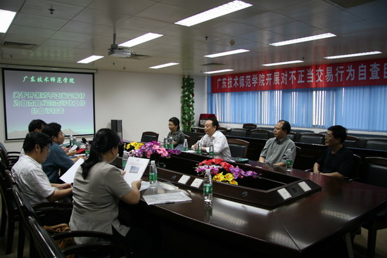 校党委副书记、纪委书记李月作了专题汇报。她详实汇报了伟德官网自2006年以来治理商业贿赂,开展对不正当交易行为自查自纠工作自查评估的情况。她指出,伟德官网治理商业贿赂领导小组认真按照省教育厅关于《广东省教育系统开展对不正当交易行为自查自纠工作检查评估的实施意见》的要求,在学校各二级单位自查自评的基础上,认真按《广东省教育系统对不正当交易行为自查自纠工作检查评估评价表》,对照宣传发动、调查摸底、查摆问题、分类处理、纠正整改、检查考核“六个环节”共26项内容,逐项进行了对照自查自评。