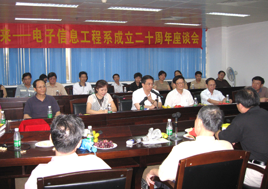 火红的五月,电子信息工程系欣喜地迎来了二十岁的生辰。从1986年开始建系,从物理系到电子工程系再到电子信息工程系,回首来路,有苦,有甜。5月11日,电子信息工程系举办庆祝系庆二十周年座谈会,大家欢聚一堂,共同见证该系20年的发展历程,一起谋划未来。党委书记邝邦洪、副院长王培林,该系第一任党总支书记张善荣,第一、二任系主任翁拔炎、赵士滨以及部分退休老教师、长期关心该系发展的在校系友、全系教工应邀出席了座谈会。