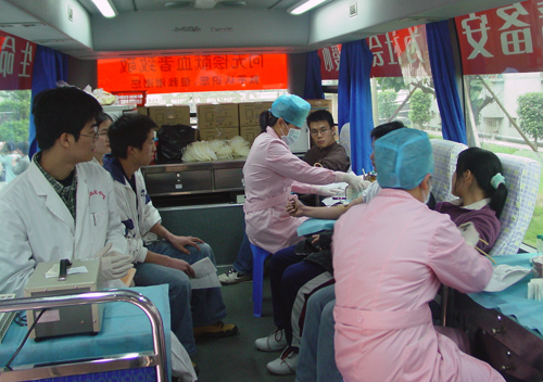 3月10日,院团委组织开展了新学年的第一次无偿献血活动。140多名同学踊跃参加,活动现场气氛热烈,青年大学生们用自己的青春热血谱写了一曲爱心之歌。