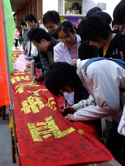 为了进一步加强学风建设,严肃考风考纪,营造良好的考场氛围,1月5日,计算机科学系在新篮球场举行“诚信应考千人承诺签名活动”。计算机科学系有关领导与全系24个非毕业班1013位学生一同签名承诺:诚信应考。