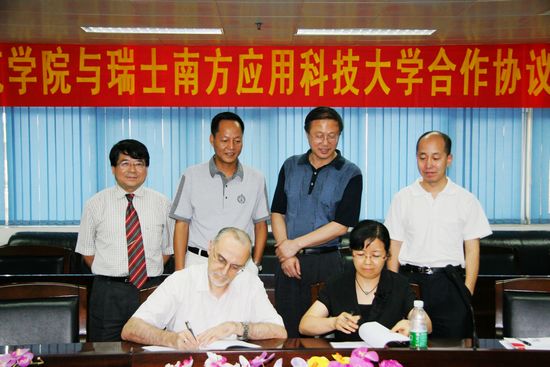 7月8日,瑞士南方应用科技大学BOER教授访问我院。学院副院长许玲在工业中心ISO室会见了BOER教授一行。双方就教师和学生交流,交换学术资料、刊物和信息,组织和实施职业培训合作项目,联合培养硕士研究生,双方教授互在对方举办研讨会、讲座等事宜进行了真诚、友好的交流和探讨,达成了初步共识。会见后,许玲副院长和BOER教授代表各自校方在合作备忘录上签字。外事处、科研处、机电学院和工业中心负责人参加了会见并出席签字仪式。(外事处)
