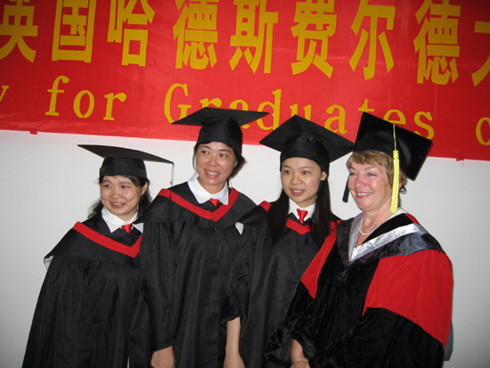 图:毕业生与英国HUDDERSFIELD大学的教育学院院长BRIDGE博士合影。