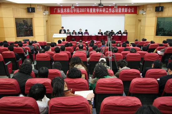 1月24日,学校隆重召开2007年度教学科研工作总结表彰大会。会议总结表彰了在2007年度教学科研工作中取得优秀成绩的单位与个人,并对新一年教学科研工作进行展望。学校党政领导邝邦洪、王乐夫、李月、吕清、罗海鸥、潘自勉、林伦伦、林卓、冯灿仪、王培林出席大会,全体中层干部、各二级学院系正副主任和教研室正副主任、具有副高以上职称教师及获奖教师参加了本次会议。