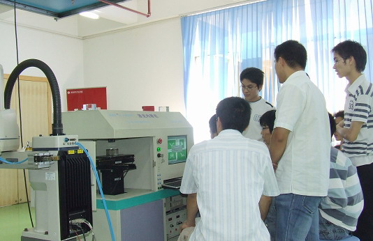 图为2005级CAD班的学生正在进行水晶内雕实训