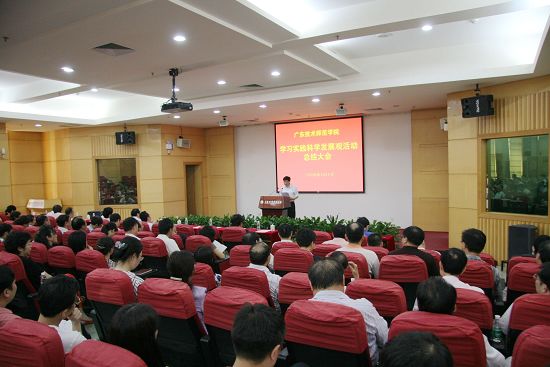 7月10日上午,学校召开学习实践科学发展观活动总结大会。校党政领导邝邦洪、王乐夫、李月、吕清、罗海鸥、潘自勉、林伦伦、林卓、冯灿仪、王培林,全体中层干部和教工党支部书记参加会议。大会由王乐夫校长主持。