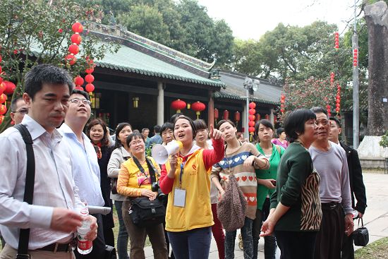 图为管理学院学生在南海神庙景区讲解。