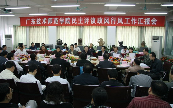 在肯定成绩的同时,杜同江副团长代表行评团提出了四点意见和希望:一要在教学和学科建设、师资队伍建设方面有新成效;二要在依法办学、校务公开方面有新进展;三要在校风、学风、师德师风方面有新转变;四要在完善长效机制、建设上有新突破。希望学校按照科学发展观的要求,为办人民满意的教育、办技术师范学院特色教育开展新的局面,做出新的成绩。