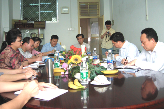 在外语系调研时,系主任邹东旗、党总支书记邱乐群等党政班子向邝邦洪书记、王乐夫院长详细介绍了外语系近年来在师资队伍建设、专业建设、学科发展、教学改革和学生就业以及思想政治工作的情况。