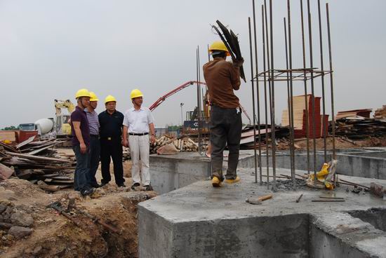 4月22日,学院副院长林卓、冯灿仪在新建办负责人陪同下,在新校区施工现场检查指导工作,要求在保证工程质量的前提下,克服各种困难,尽快推进工程建设进度,争取能在8月中旬实现竣工验收的既定目标。截止22日,新校区一期工程一、二标段已完成基础全部静压预制管桩施工工作,进入浇筑桩基承台梁混凝土施工阶段。