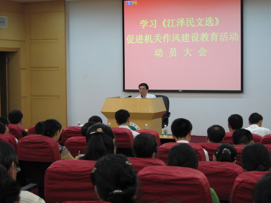 学校党办主任、机关党总支书记卓光琳主持动员大会,并对学习《江泽民文选》,促进机关作风建设教育活动的相关工作进行了说明和安排。