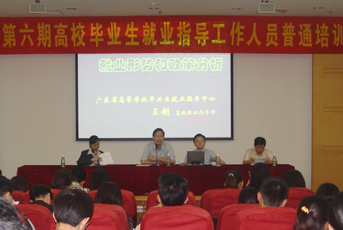 4月27日,广东省第六期高校毕业生就业指导人员培训班在我院举行。全省共有46所高校150多名就业指导人员报名参加了本次培训。学院党委副书记罗海鸥、省高校毕业生就业指导中心有关负责同志出席了培训班开班典礼。罗海鸥副书记在开班典礼上作了讲话,代表学院欢迎各兄弟院校的同行到我院参加培训,并向他们介绍了学院的发展情况。