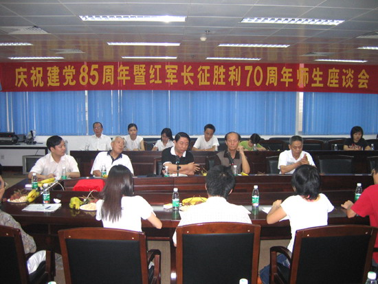 6月22日下午,校关工委、校团委在工业中心六楼会议室召开庆祝建党85周年暨红军长征胜利70周年师生座谈会。校党委副书记吕清,部分关工委老同志和学生代表共四十人参加了座谈会。
