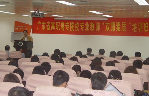 吴绮琳在讲话中强调:职教发展的关键在于师资建设,加强教师继续教育培训势在必行。今年教育部批准在广东筹建全国高职高专师资培训基地,广东技术师范学院本次为顺德高职院100多位教师举办的订单式培训——省高职高专“双师素质”教师培训班的顺利开展,为广东基地的建设打响了第一炮。他希望学员们在广东技术师范学院所提供的教学交流平台上携手共进,学有所成,成为职教战线的骨干力量。